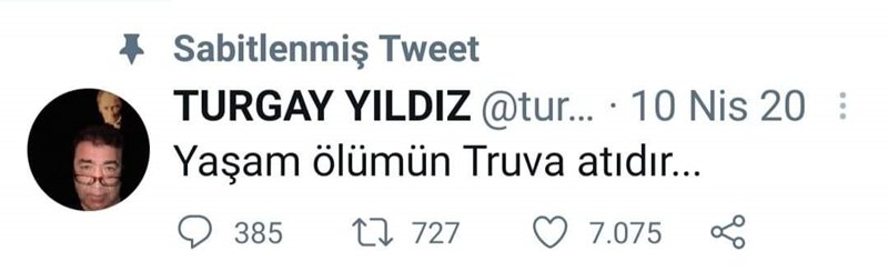 "Yaşam ölümün Truva Atı'dır" yazmıştı bir tweetinde de o!