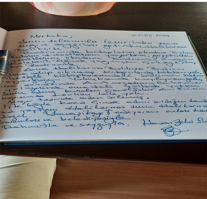 Dönüş günü gelince Merhaba demek ve vedalaşmak üzere Anı Evine doğru yola çıkıyorum yolda ki levhaları takip ederek o da ne ikinci levhadan sonra yol çatallaşıyor ve yeni bir levha yok yokuşa sürüyorum aracımı yolda sorduğum kişi bilmiyor! Devam ediyor dört dönüyorum bir genç geride kaldığını söylüyor ve iki genç kız tarif etmiyor işte önündesiniz diyor. Bakıyorum Halikarnas Balıkçısı Cevat Şakir’e ait ne bir levha ne bir işaret. Hemen sokak başında ki Saldır Şeyhi Türbesi kadar değer görmeyen bir anı evi… Ve anı defterinde şikâyet ediyorum bu umursamazlığı: