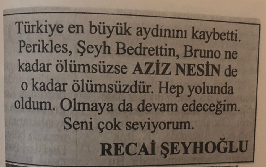 20 Aralık 1915’te Heybeliada’da doğan Mehmet Nusret Nesin’i 6 Temmuz 1995’te Çeşme’de sonsuzluğa uğurlamıştık Aziz Nesin olarak…