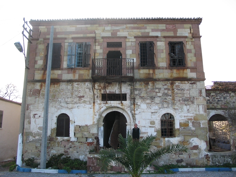 Peki kimdi bu özel yapının sahibi? Söz konusu eserimizin bulunduğu kıyının arkasındaki sahilde bir zeytinyağı fabrikası vardır. Halkın bildiğine göre işte bu fabrikanın sahibidir konutun sahibi de. Bilgilere göre bugünkü çarşının olduğu yerde de bir bakkalı bulunuyormuş. Ana kapının hemen üstüne yaptırdığı demir petekte 1859 yılı yazıyor.