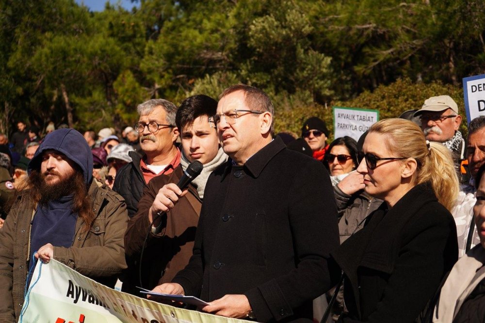 Tabiat parkının yalnızca Ayvalık’ta yaşayanlara ait olmadığını, bu doğa harikasında yaşayan diğer canlılara karşı da sorumlu olduğunu vurgulayan Mesut Ergin, “Bugün ise dünyanın en güzel yerlerinden olan cennet köşemiz Ayvalık'ın hem belediye başkanı olarak hem bu güzelliklerin içerisinde yaşayan bir vatandaş olarak bahsi geçen yerlerin günü birlik işletmelere özelliklede alan olarak ihaleye çıkmasına karşı olduğumuz için buradayız. Çünkü yaşadığımız bu toprakların tek sahibi biz değiliz. Burada yaşayan tüm canlıların yaşam hakkına saygı duymak zorundayız. Tabiat parkı halkımızındır, burada yaşayan canlılarındır, işletmelere verilmesini istemiyoruz. Çünkü ardı arkası durmayacak bunu da biliyoruz. Ama biz bu güzellikleri koruyarak gelecek nesillere taşımaya kararlıyız” dedi.