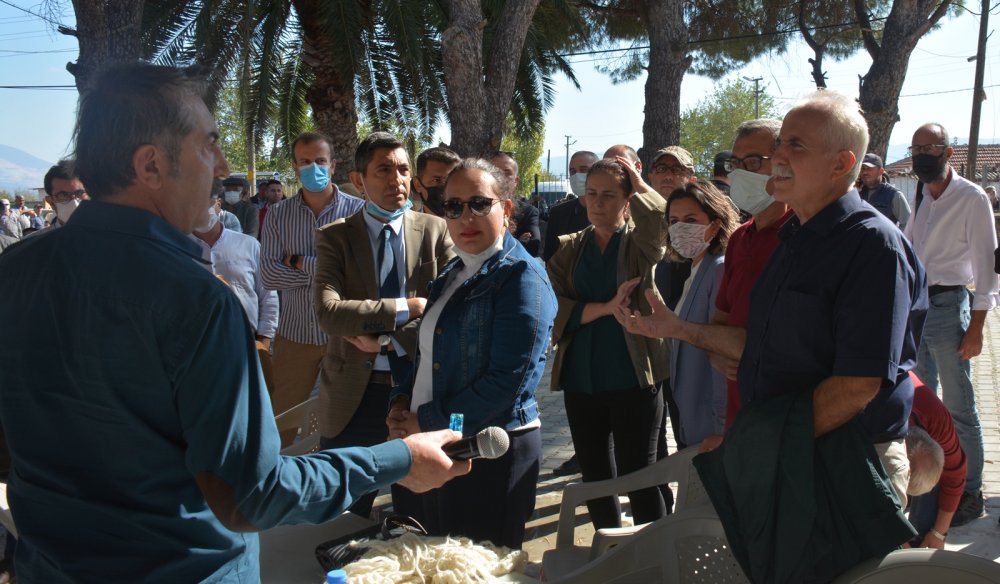 Kendilerine 10’ar dönüm arsa vaadinde bulunarak kâğıtlar imzalatıldığını iddia eden köylü ile ‘burada hayvancı yok’ diyen Bergama İlçe Tarım Müdürü Ümmiye Çelik Saygın arasında gerginlik yaşandı. İzmir Ticaret Odası yetkililerinin ‘bizim de söz hakkımız olmalı’ sözlerine de Bergamalılar tarafından tepki gösterildi.