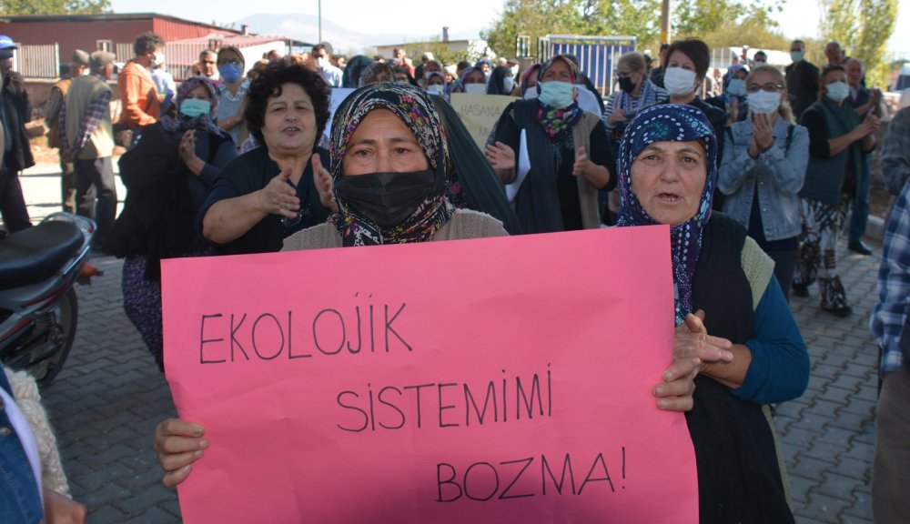 İzmir’in Bergama İlçesi’ne bağlı Alibeyli Mahallesi’nde yöre köylüsü, yapılmak istenen ÇED toplantısını kadınıyla, yaşlısıyla protesto ederek yaptırmadı.