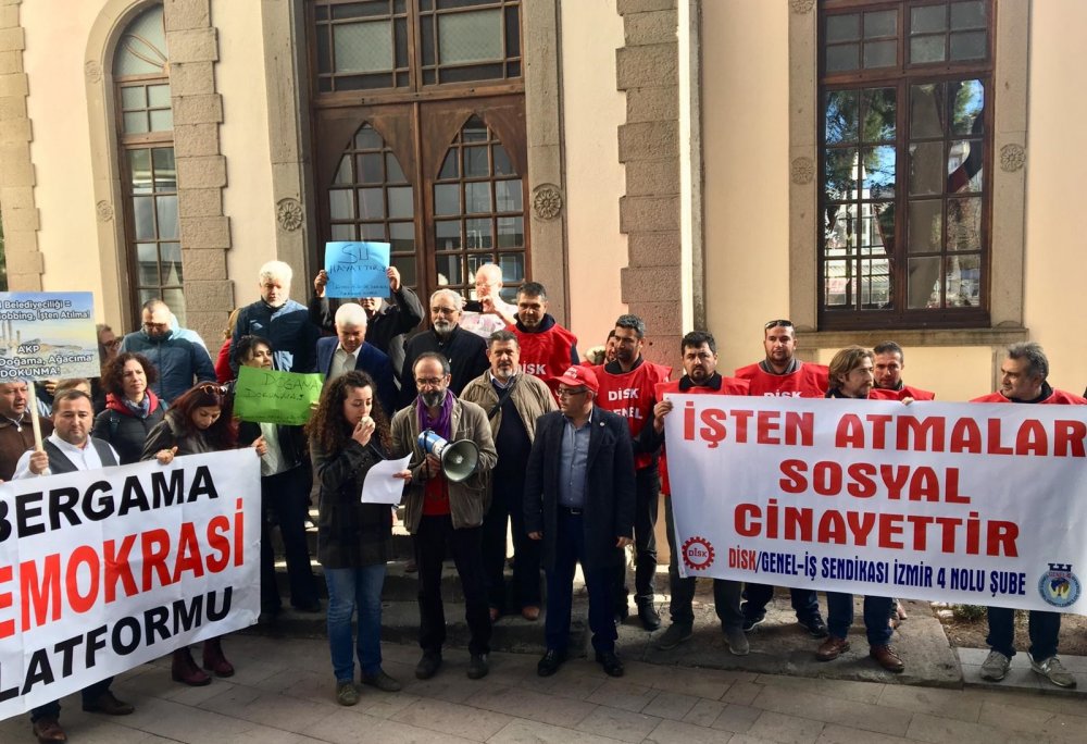 AKP’li Bergama Belediyesi’nin kayyım ile yönetilen Koza Altın İşletmelerine karşı açmış olduğu çevre davalarından çekilmesi ve belediye çalışanı 3 kişinin işlerine gerekçe gösterilmeden son verilmesi protesto edildi.