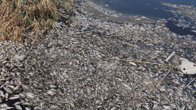 Foça ilçesindeki eski Gediz yatağında binlerce balık, oksijensizlik nedeniyle öldü.