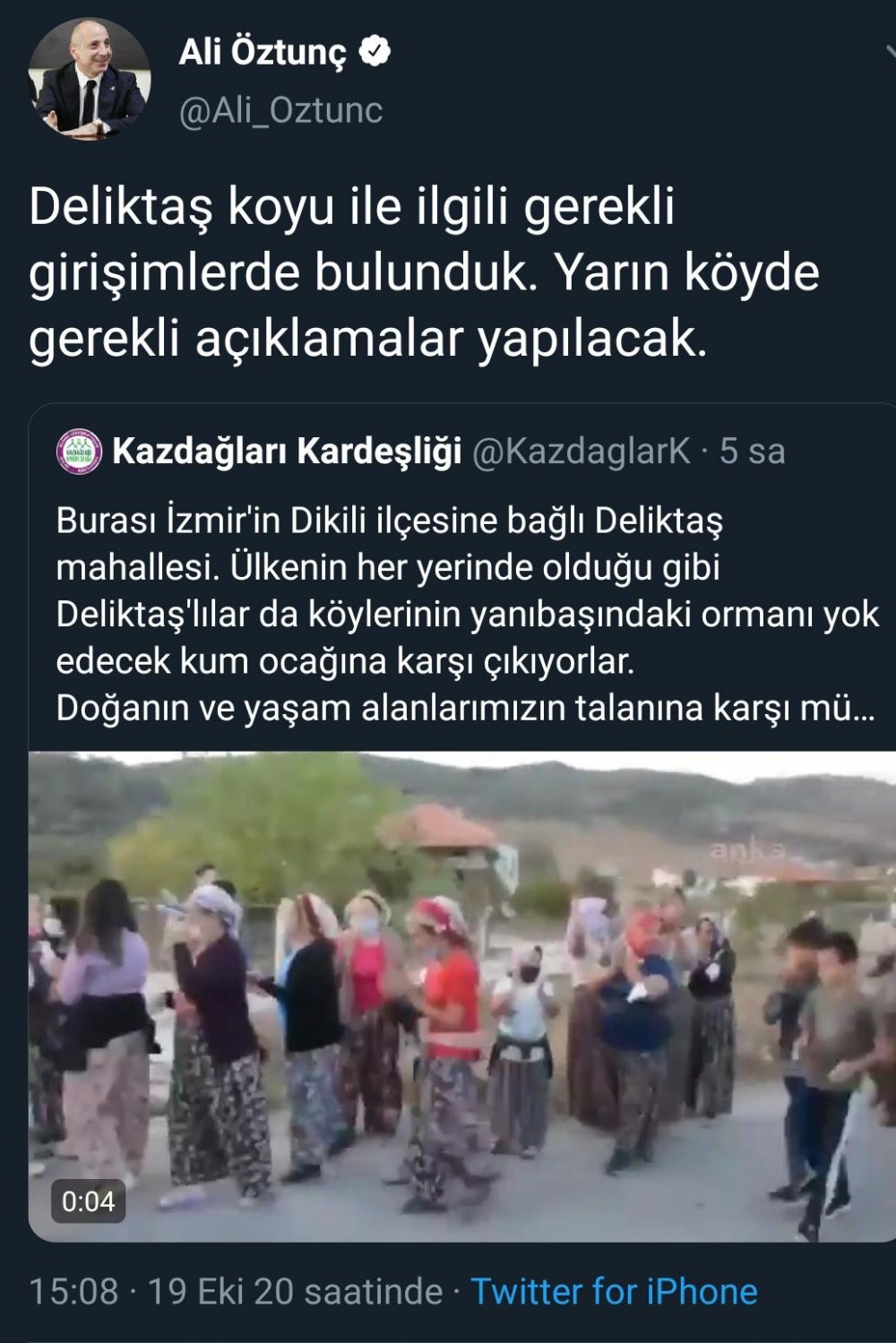 Yapılan protestonun ardından CHP Genel Başkan Yardımcısı ve Kahramanmaraş Milletvekili Ali Öztunç, twitter hesabından bir paylaşımda bulundu. Öztunç paylaşımında; "Deliktaş Köyü ile ilgili gerekli girişimlerde bulunduk. Yarın köyde gerekli açıklamalar yapılacak" ifadelerine yer verdi.