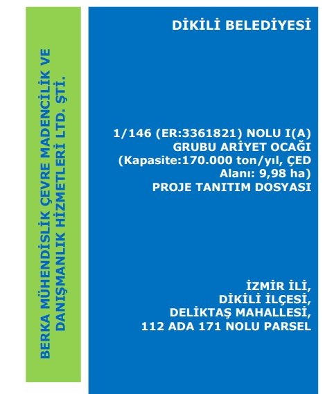 Büyükşehir yasasıyla birlikte mahalle statüsüne geçen Dikili'nin Deliktaş köyünde belediyenin 598 hektarlık alanda ruhsat alarak başlatmayı planladığı duyuruldu. Dikili Belediyesi Ariyet Ocağı Tanıtım Projesi’nde “sahada toplam 100.000 m3 /yıl (170.000 ton/yıl) malzeme iş makinaları ile yerinden sökülecek ve tamamı bölgedeki alt yapı çalışmalarında kullanılmak üzere nakledilecektir” ifadelerine yer verildi. Bu duruma yöre halkı büyük tepki gösterdi. Geçtiğimiz hafta Cuma günü köy meydanında toplanarak kum ocağı yapılacak alana yürüyen kadın erkek, genç yaşlı yaklaşık 1000 köylü durumu protesto etti.