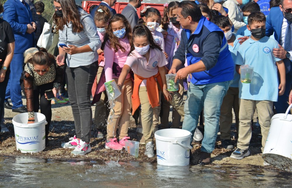 İlçe Tarım Müdürlüğü tarafından desteklenen organizasyon, Bademli’nin Pisa Koyu yolunda gerçekleştirildi. Etkinlikte flamingolara da ev sahipliği yapan Bademli Dalyanı’na, çocuklar eşliğinde 15 bin adet “Mercan” ve “Sarıağız” yavrusu bırakıldı.