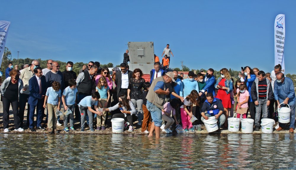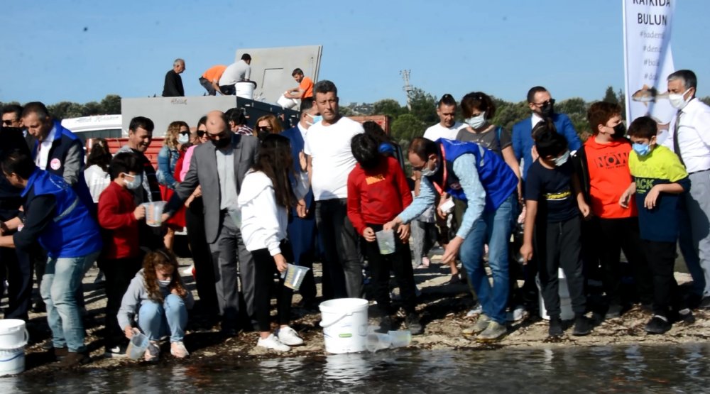 Dikili Bademli'de denize 15 bin yavru balık bırakıldı!