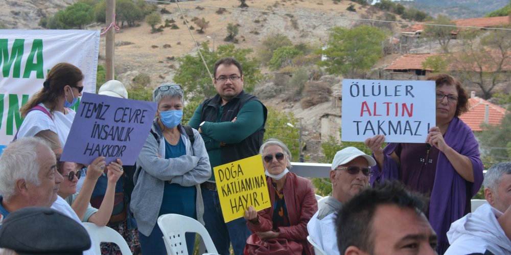 Firma yetkililerinin yaptığı açıklamaların ardından söz alan Bergama Çevre Platformu sözcüsü Erol Engel; “Maden açıldığı yıldan bu yana bölgede bulunan çamfıstıklarında 10’da 9 kayıp var. Bu 500 bin tonluk kırma eleme tesisinden sonra bölgede tarım ile uğraşmak daha da zorlaşacak. Köylünün geliri daha da küçülecek. İçme suyumuz, dünyada suyun bu kadar değerli olduğu zaman diliminde zarar görecek. Şirket bir gün gidecek ve yöre halkını kaderine terk edecek. Bu sebeple projeye karşıyız” dedi.