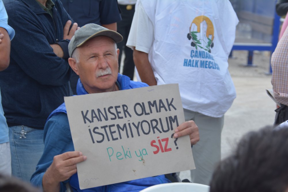 Çandarlı Halk Meclisi Üyesi Eyyüp Sabri Gamsız; “Firma bir süre sonra gidiyor ama bu bölgede yaşayan insanlar sefaleti yaşıyor. Siz gittikten sonra bunun acısını bizler, torunlarımız yaşıyor. Ben Çandarlı’da yaşıyorum. Buradaki yeraltı sularını içiyoruz. Torunlarımız, evlatlarımız zehirlenmesin” dedi.