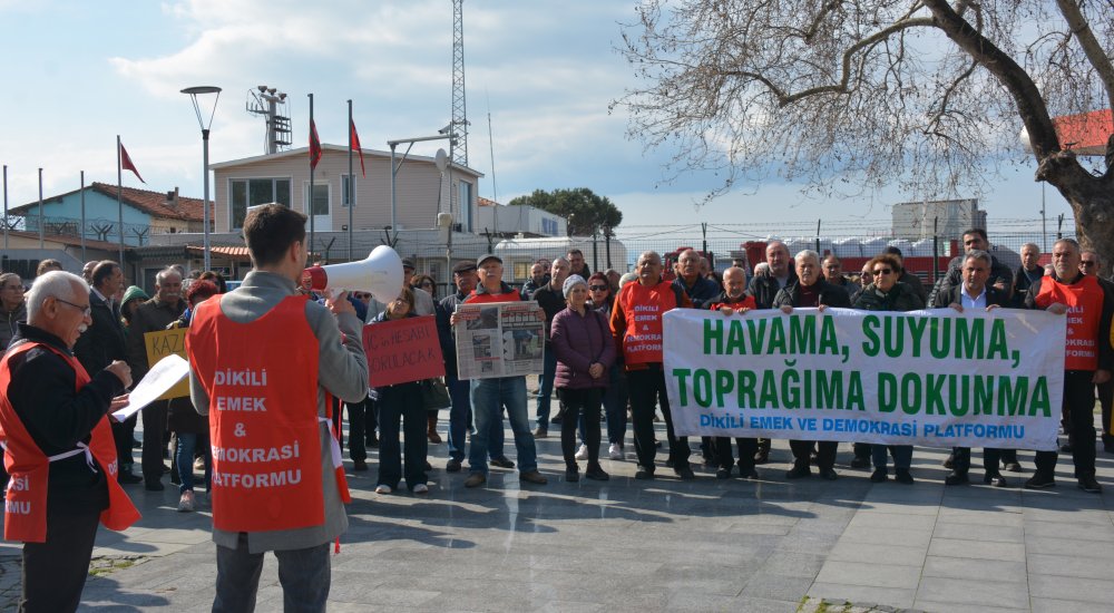 Bakırçay’da yaşanan maden talanına da dikkat çekilen basın açıklaması platform adına sunum yapan Hüseyin Acar öncülüğünde Dikili Kültür ve Çevre Platformu üyesi Uğur Özcan tarafından okundu.