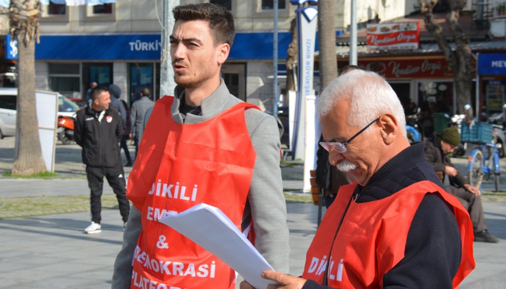 “Dikili Emek ve Demokrasi Platformu olarak ‘Bu yağma durdurulmalı, fay hattı üzerinde bulunan Anagold Şirketine ait bu maden kapatılmalı, siyanürle altın araması yasaklanmalı, ihmali bulunanlar ve maden aramasına izin verenler bir an önce yargılanmalıdır. Sorumlu olanlar cezalandırılmalıdır. TBMM’de bulunan doğaya, çevreye, insana zarar verecek olan ‘Torba Yasa’ derhal geri çekilmelidir,’ diyoruz” sözlerine yer verildi.