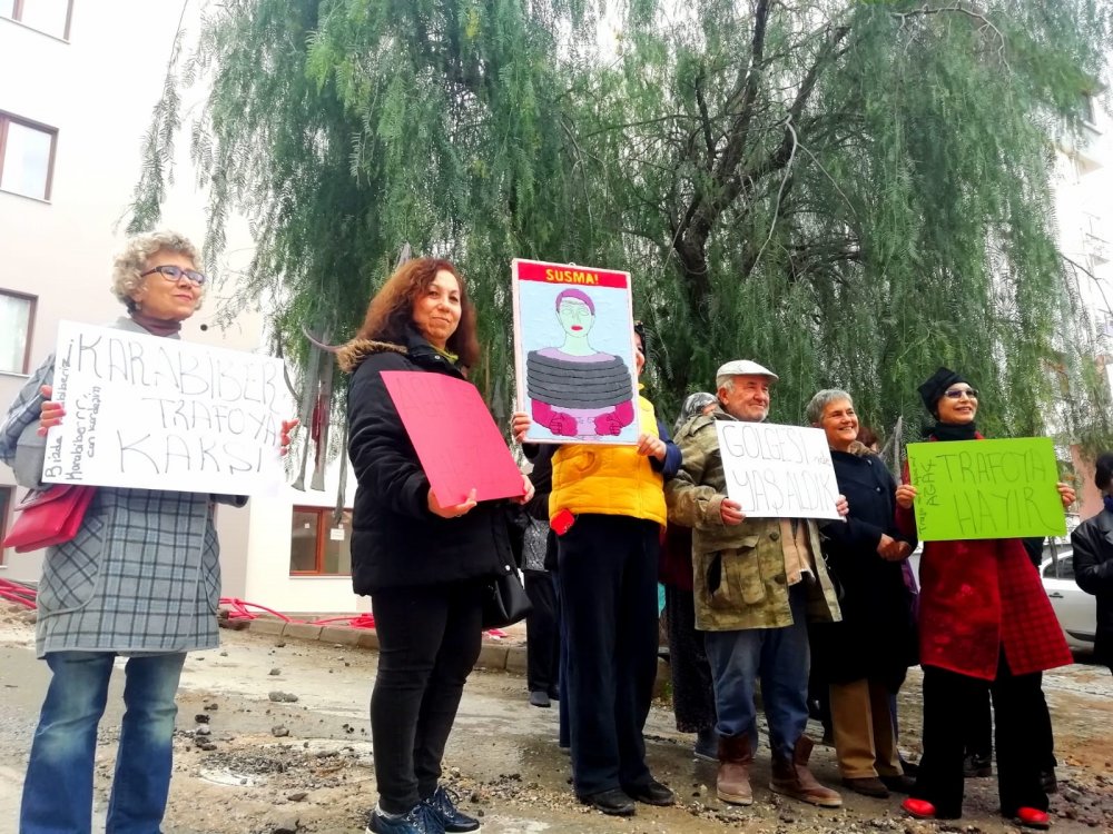 Karabiber ağacı altında gerçekleşen basın açıklamasında mahalle sakinleri “Gölgesinde Büyüdük”, “Gölgesinde Yaşlandık”, “Karabiber Trafoya Karşı”, “Trafo İstemiyoruz”, “Ağacıma Dokunma” ve “Doğama Dokunma” dövizleri açtılar. İmza kampanyası başlatıp, belediyeye dilekçe yazdılar.