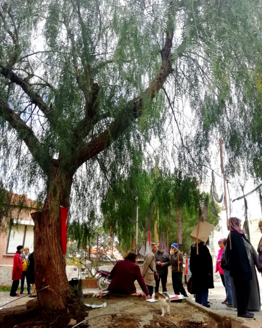 Dr. Yasemin Özbek ayrıca; “Bu ağaç komşum Fato ve eski mahalle sakinlerinin, mahalleli olma kültürünü yaşattıkları, buluşup altında torunlarıyla birlikte muhabbetin dibine vurdukları, yaz gecelerinde dibinde serin serin oturdukları, yolcuların, sıcaktan bunalanların soluklandığı tek yerdir. Mahallenin kedi, köpek ve kuşlarına yem ve su konulan, onların da buldukları tek gölge ve mesken tuttukları tek yerdir” dedi.