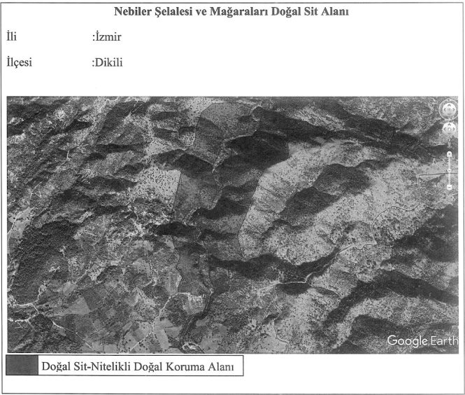Resmi Gazete’de yer alan duyuruya göre Dikili’de yer alan Nebiler Şelalesi ve Mağaraları’nı kapsayan bir bölge Bakanlığın onayı ile ikinci derece doğal SİT’e denk gelen 'Nitelikli Doğal Koruma Alanı' olarak ilan etti. Bölgedeki ‘kesin korunacak hassas alan’a ilişkin tescil işlemleri ise sürüyor.