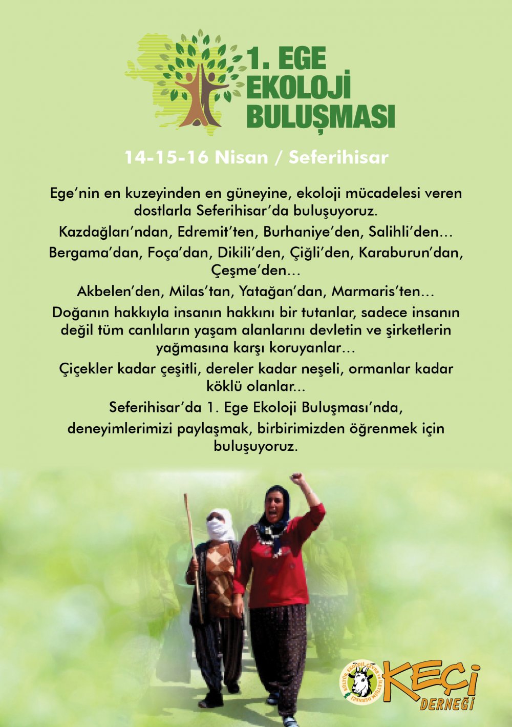 1.Ege Ekoloji Buluşması'nı sosyal medyadan www.instagram.com/keci_dernegi adresinden takip edebilirsiniz.