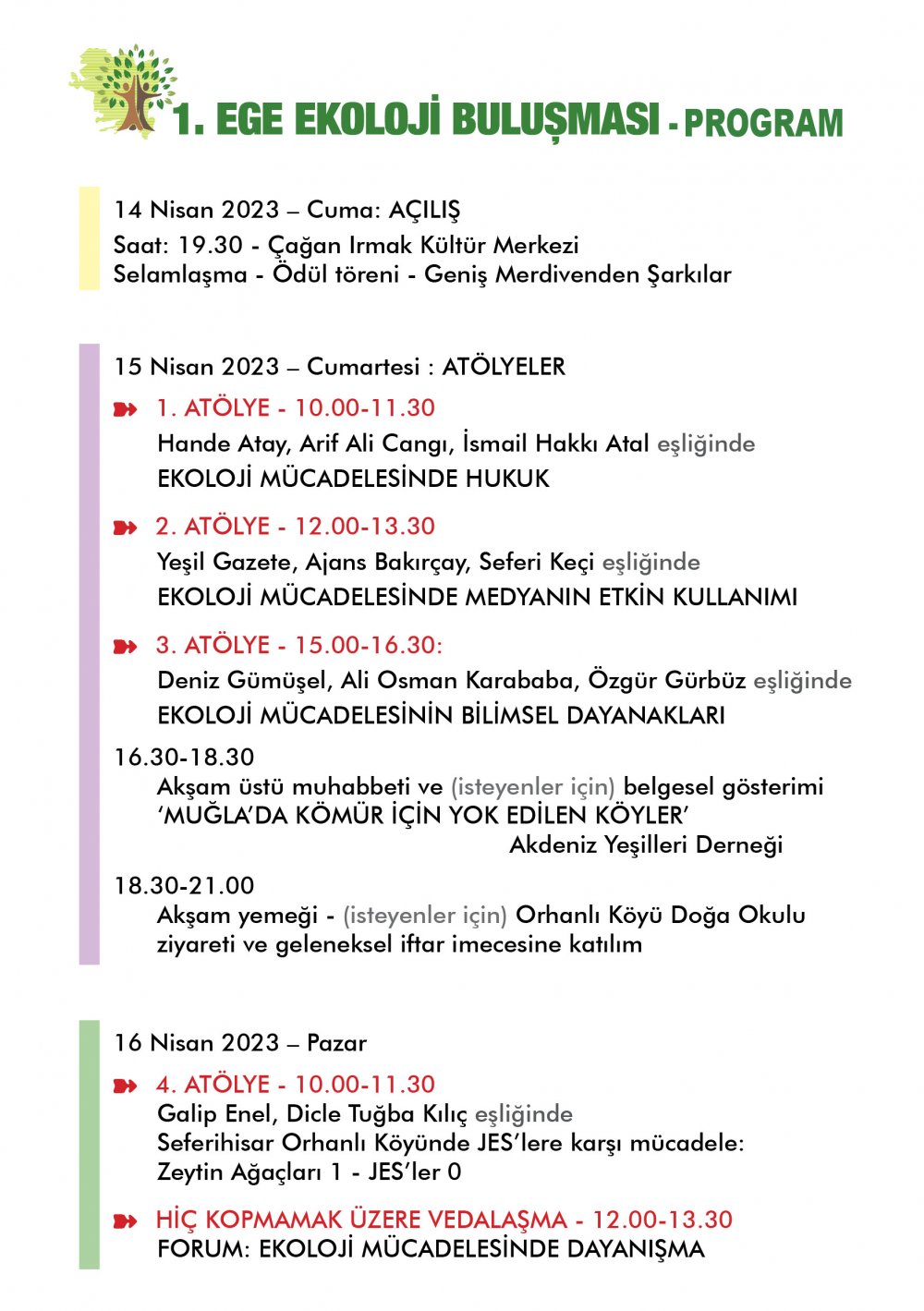 Açılış konuşmasıyla başlayacak olan program ödül töreni ve Kazdağları, Akbelen, Orhanlı Köyü, Burhaniye, Bergama ve Deştin Köyü’nden mücadele edenlerin konuşmaları ile devam edecek.