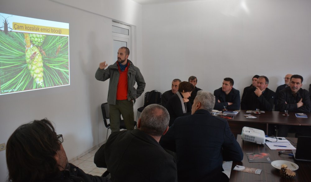 Kozak Yaylası’nda bölgenin önemli geçim kaynaklarından çam fıstığı üretimindeki düşüşün önlenmesi için başlatılan çalışmalara ilişkin bilgilendirme toplantısı yapıldı.