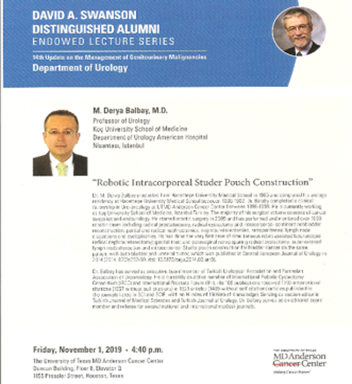- Prof. Dr. M. Derya Balbay; Ankara’daki Robotik Üroloji ve Robotik Üroonkoloji alanındaki çalışmaları ve uygulamaları, 2009 yılı başlarından bu yana ilk olarak başlatmıştır.