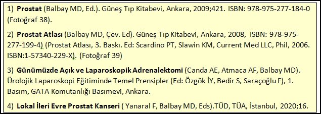 - Mungan A. Üroonkolojik Açık Cerrahi Atlası. HÜ Hast. Basımevi, Ankara, 2011.