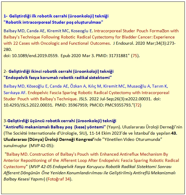 Bu bağlamda olmak üzere, Türkiye’de üroonkoloji ve robotik üroonkoloji alanında öncülük yapmış olan, genç bilim insanlarından birisinin de Prof. Dr. M. Derya Balbay olduğu görülmektedir.