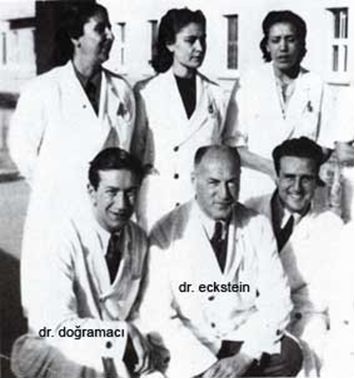 Prof. Dr. Albert Eckstein (Fotoğ. 7) ve eşi Dr. Erna Eckstein (1895-!) (Fotoğ. 8) 14 yıl Türkiye’de özveri ile çalışmış ve birçok ilklere imza atmıştır. Oğulları Dr. Herbert B. Eckstein (1926-1986) (Fotoğ. 9) Hacettepe Çocuk Hastanesinde 2 yıl (1958-1961) çalışmış, 30 yataklı bir birim kurmuş, çocuk üriner sistem taşları ile ilgili çalışmalar, cerrahi girişimler yapmış, Ankara’da çocuk cerrahisi ile ilgili çalışmaların itici gücü olmuş, Anadolu’yu dolaşarak taramalar yapmış ve çocuklara sağlık hizmeti götürmüştür (10-14).