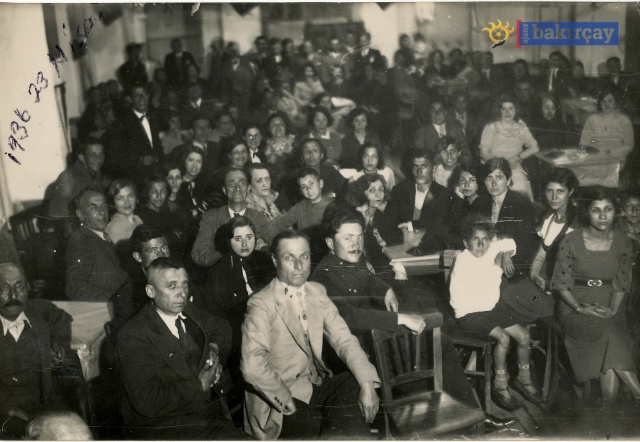 23 Nisan 1936 Ulusal Egemenlik ve Çocuk Bayramı… Gençlerbirliği Salonu’nda bayram ile ilgili balo gösterisi. En önde Başöğretmen Kuva-yi Milliye kahramanı Halil İbrahim Zeyrek oturuyor.
