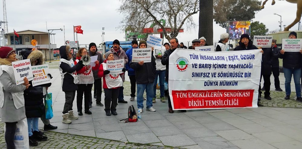 Tüm Emekliler Sendikası Dikili Şubesi, Atatürk Meydanı'nda basın açıklaması düzenledi.