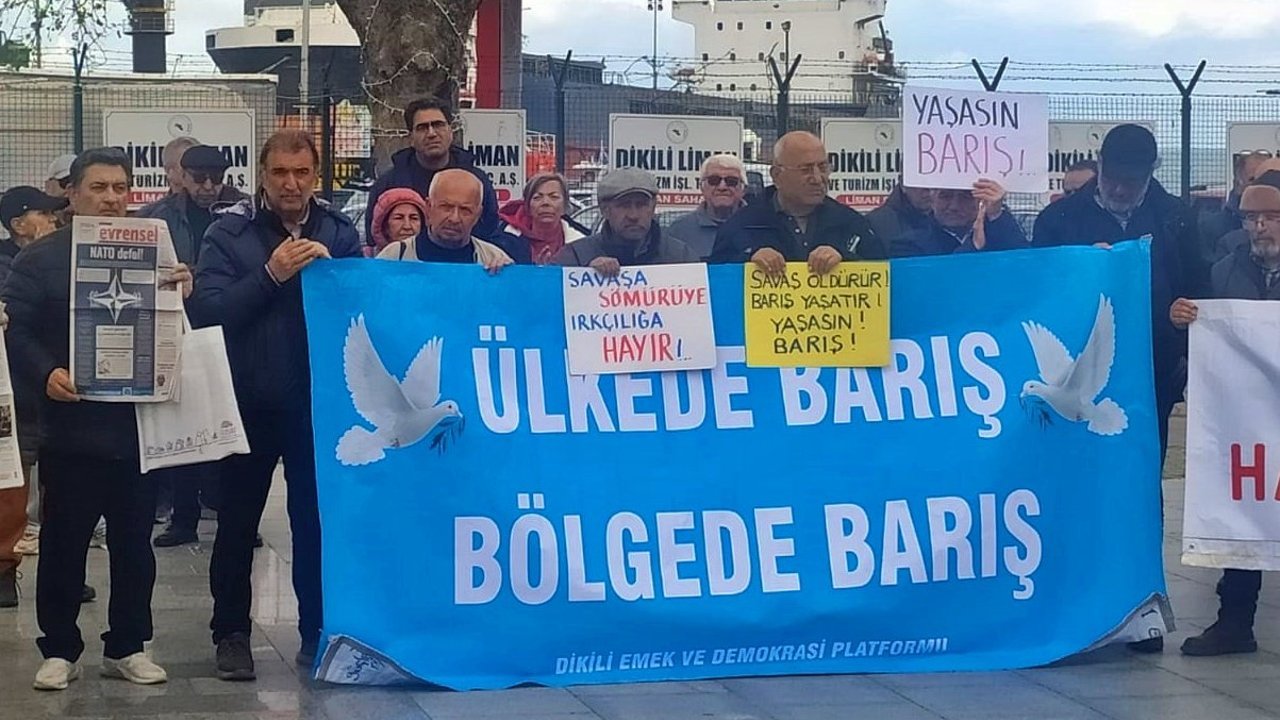 Atatürk Meydanı’nda toplanan grup, NATO’nun bir savunma örgütü değil, "savaş ve sömürü aygıtı" olduğunu belirterek Türkiye’nin ittifaktan ayrılması çağrısında bulundu. "Saraylar savaş, halklar barış istiyor" ve "Ülkede barış, bölgede barış" yazılı pankartlar açıldı.