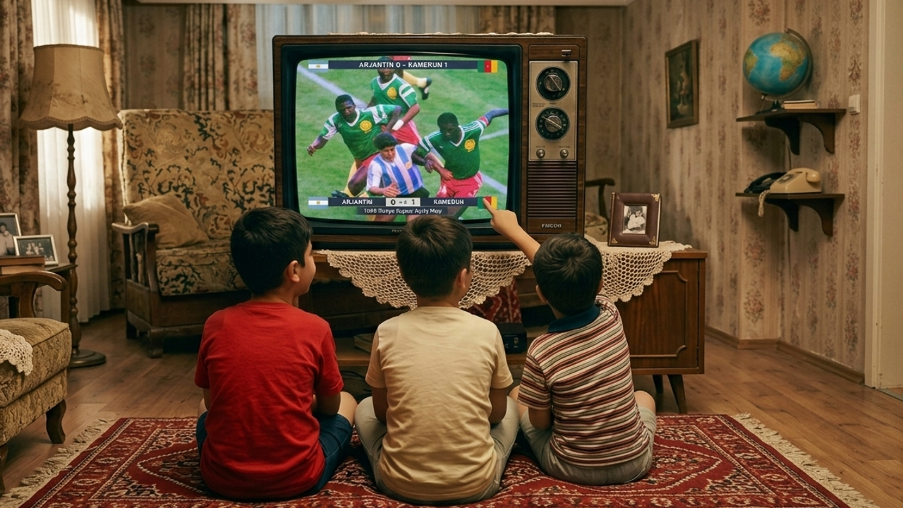Sofradan, televizyon başına geçmek bir anlık bir hamle gibi gözükse de anneler ordusu müdahalede gecikmedi. ‘O eller yıkanacak’. Bunun üzerine banyoda bir el yıkama kuyruğu oluştu. Aklımız maçta. Ya izleyemediğimiz dakikalarda gol olduysa? Televizyonu açıp, herkes yerini aldığında dakika 55’i geçmişti. Neyse ki maç 0-0 hala… Kaçırılan herhangi bir gol yoktu. 1990 Dünya Kupası’nın favorisi gösterilen Arjantin, beklenen golü atamıyordu. Dakikalar 61’i gösterdiğinde Bıyıklar’dan Kana olan, yaptığı faulün ardından kırmızı kart gördü. Eniştem itiraz etti. ‘Hakem kesin Arjantin’i tutuyor’ dedi. Bu kırmızı kartla 10 kişi kalan Kamerun, geri çekileceğine daha iyi oynamaya başladı. 67. Dakikada Bıyıklar’dan Omam Bıyık, yapılan ortaya öyle bir sıçradı ki, kafayı vurduğu nokta oldukça yüksekti. Kaleci Golgecea, topu yerde karşılasa da ellerinin altından kaçırdı.