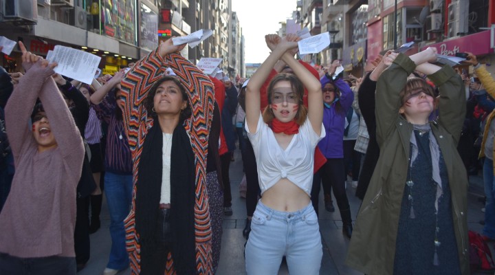 Şili'de feminist örgüt Las Tesis'in kadına yönelik cinsel saldırı, istismar ve şiddeti protesto için başlattığı danslı protestoya, İzmir'de bir grup kadın da destek verdi.