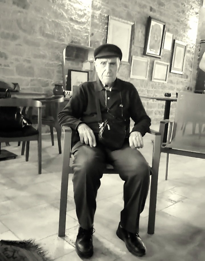 Topluluğun provalarına zaman zaman 90 yaşındaki Hüseyin Öztürk de katılıyor. Baba ve annesi Girit göçmeni olan Hüseyin Bey, Cunda’da yaşıyor. Sekiz çocuğun ikincisi olarak dünyaya geliyor burada. Küçük yaşta ekmek parasının derdine düşüyor. Tarlada tüm aile çalışırken babasından dönemin Rumca türkülerini dinleyerek öğreniyor. 90 yaşında ama hafızası ve bedeni hala dipdiri. Geniş bir şarkı repertuvarına sahip. Hatta provalara katılıp Yunanca sözlü şarkıların anlamını o şarkının hikayesiyle anlatıyor dinleyenlere...
