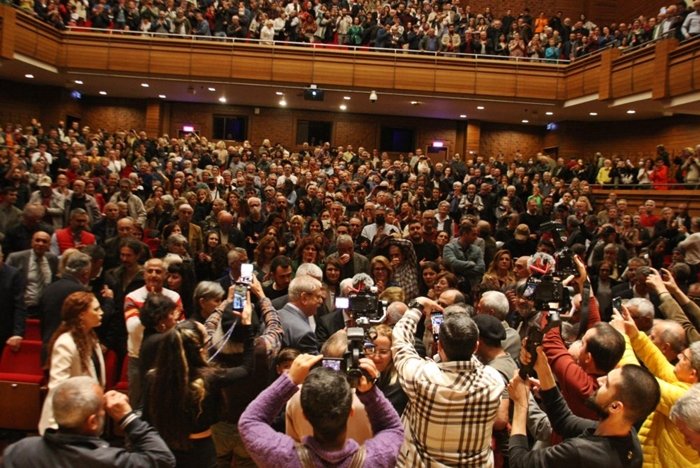 Galasında 1200 kişilik salon tamamen dolu olup dışarıda kalanlar olsun… Duygu seline kapılan seyirciler, gecenin sonunda salondan ayrılmak yerine Osman Başkana sarılma kuyruğunda olsun… Miting havasında, sloganlar eşliğinde son bulsun…