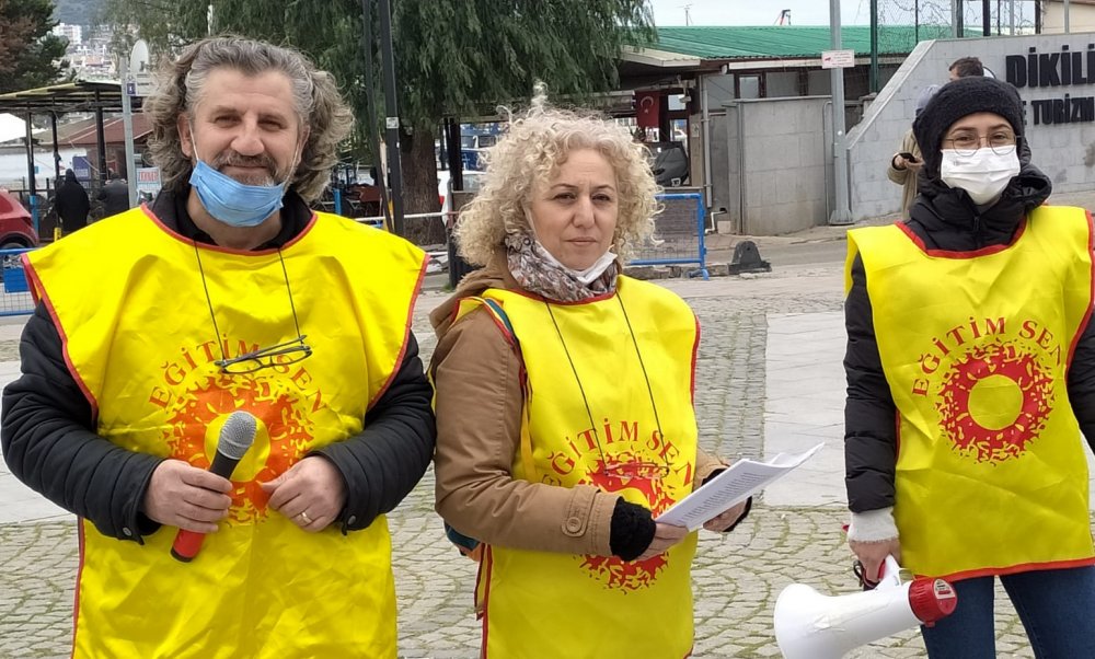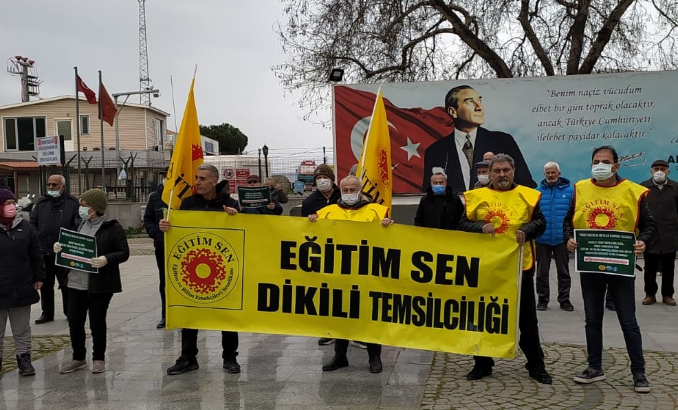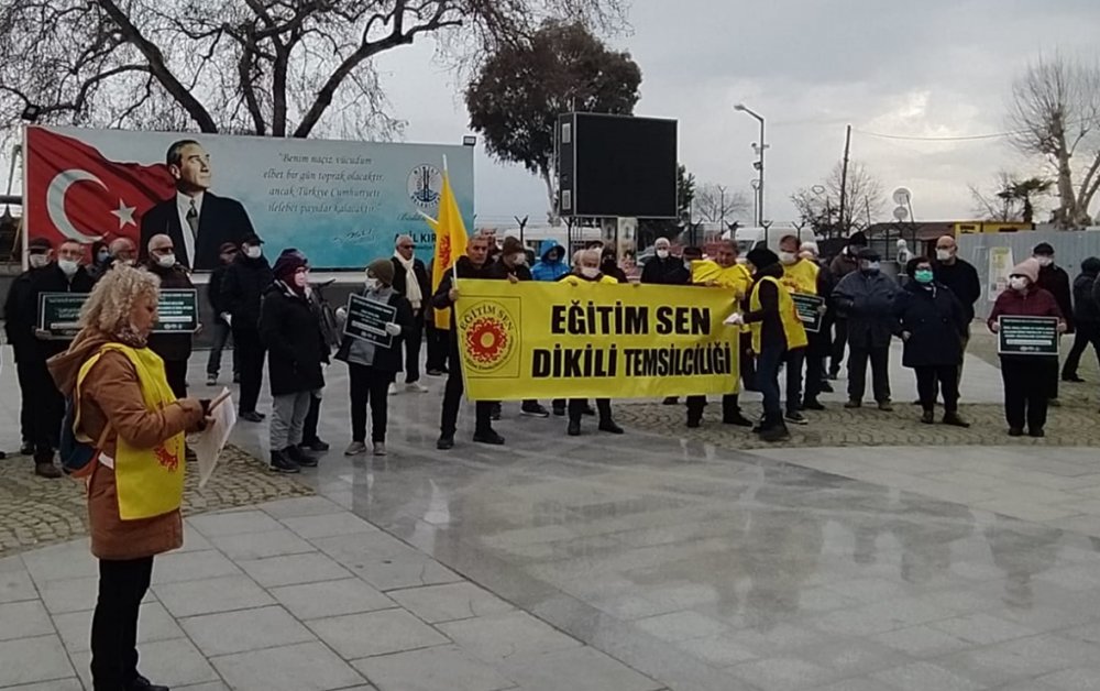 Dikili Atatürk Meydanı’nda toplanan Eğitim-Sen üyesi öğretmenler, Öğretmenlik Meslek Kanunu'nun geri çekilmesi için hükümete çağrı yaptı. Yapılan basın açıklaması öncesinde ise "Öğretmenler reddediyor", "Çalışma barışını bozacak", "Kariyer basamaklarını getirecek" ve "Haklarımızı ve taleplerimizi içermiyor" yazılı dövizler açıldı.
