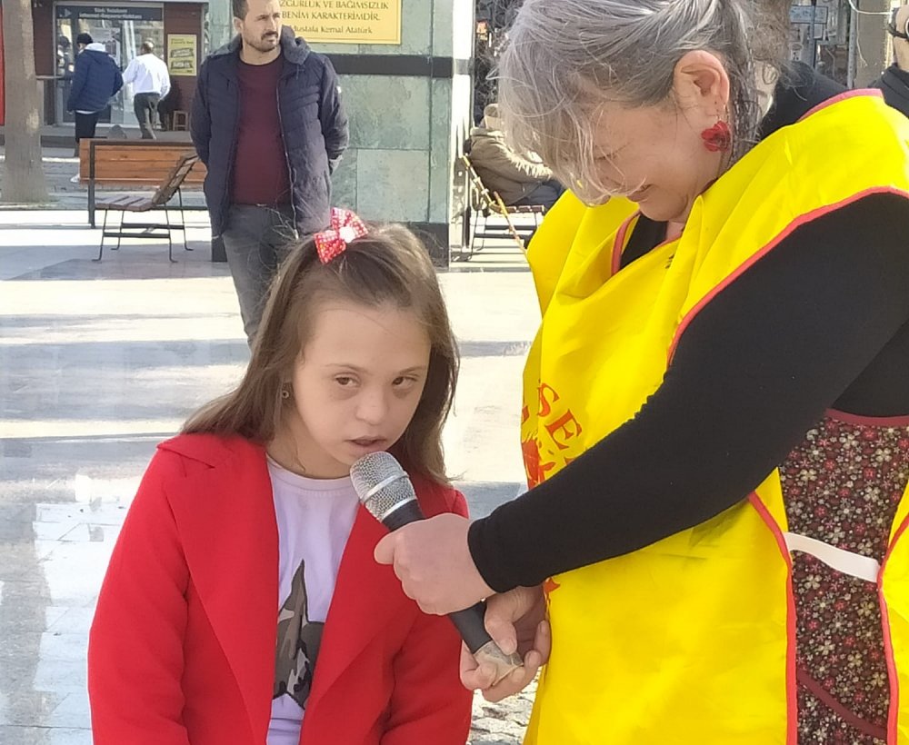 “Sosyal basında görüyorsunuzdur. Engelliler için koşuyoruz, Engelliler ve aileleri için kahvaltı, konuşmalar, paneller, eğlenceler. Size bir şey söyleyeceğim. Zeynep ve Azat için koşmayın. Sadece özel günlerde Meryem ve Meral için yemek vermeyin. Bize engel olmayın yeter. Haklarımızı bizimle birlikte arayın, bizi fark edin, bize zaman ayırın yeter. Bu sene okulla ilk defa tanışan Mustafam gibi, Ahmet, Arda ve Zeynep Ecrin için hayatı kolaylaştırın yeter”