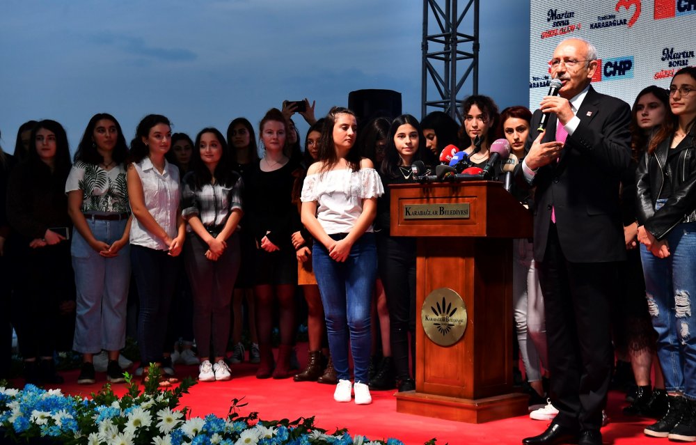 Kılıçdaroğlu, “Hesap veren bir siyaset Türkiye’nin geleceğini sağlıklı çizen bir siyasettir. Türkiye’de 17 yılda bu sorun çözülemediyse bu sorunun ayıbı siyaset kurumuna aittir. Siyaset kurumu bu sorunu çözebilir mi? Evet çözebilir. CHP bir yılda bu sorunu çözecek” dedi. Öğrencilerle arasında geçen konuşmadan bahseden Kılıçdaroğlu şöyle konuştu: “Bir kızımız ‘Üniversiteyi bitirdiğimizde iş bulacak mıyız ?’ diye sordu. Umutsuzluğun geldiği bu nokta beni üzdü. Ona şunu söyledim bu sorunu aşman ın tek bir yolu var üretmek. Türkiye üretmeli, istihdam alanları yaratmalıyız. Kimsenin umutsuzluğa kapılmaması lazım. Genç arkadaşlarıma söylemek isterim ki Türkiye’nin çözülmeyecek hiçbir sorunu yoktur. Beraber birlikte çözeceğiz. Çünkü biz gençlerimize kızlarımıza erkeklerimize güveniyoruz” dedi.