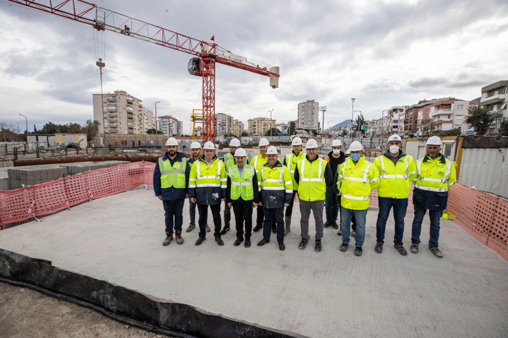 Kaba inşaatı tamamlanan Şehitlik İstasyonu’nda yürütülen çalışmalar hakkında bilgi alan Başkan Soyer, tünel ve istasyon girişini, yürüyen merdiven alanlarını inceledi. Soyer, şantiyede gece gündüz demeden çalışan emekçilere de teşekkür etti.