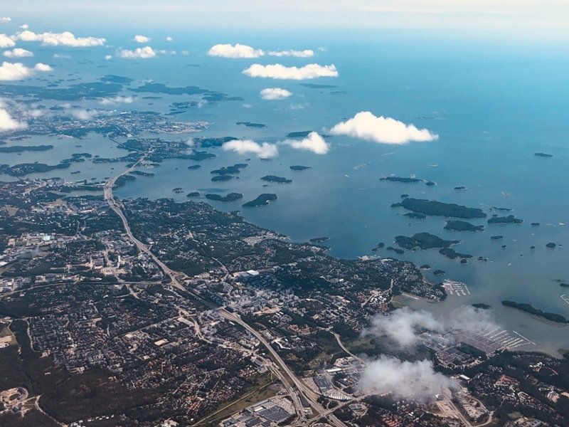 Uçaktan yere bakma korkunuz yoksa ve elbette hava koşulları da engel değilse gittiğiniz ülkeyle ilgili olarak ayağınız daha yere basmadan izlenim sahibi olabiliyorsunuz. Helsinki’ye inerken gözlerimizin önüne serilen görüntü hem başkent hem de ülkeyle ilgili bilgi vermeye yetti. Daha önce bu duyguyu Belgrad’a inerken yaşamıştık. Belgrad ve Helsinki mavi-yeşil bakımından biri diğerine taş çıkartacak denli varsıl iki kardeş gibi.