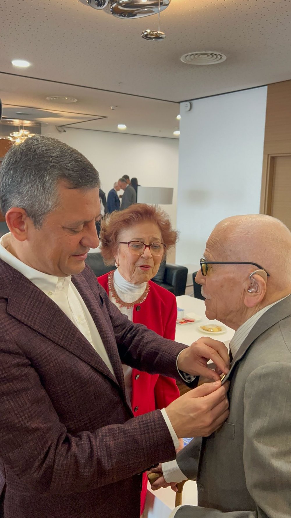 104 yaşındaki Şaban Yaylalı’ya CHP Genel Başkanı Özgür Özel tarafından parti rozeti takıldı.