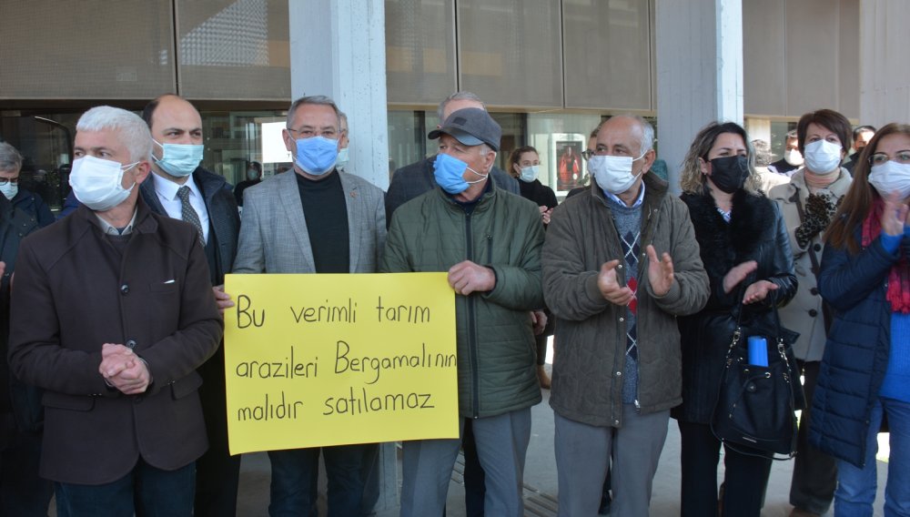 Yöre köylüsü tarafından "Köylünün ata toprağını satamazsınız", "Sat, sat, sat nereye kadar?", "Atalarımızdan bize miras topraklarımızı satmayın", "Tarım arazileri çocuklarımıza aittir, satamazsınız” ve "Bu verimli tarım arazileri Bergamalının malıdır, satamazsınız" dövizleri açıldı.