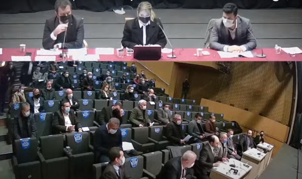 Mecliste bir başka tartışma konusu da Çamlıpark’ın karşısında yer alan belediye arazisinin kat karşılığı devredilerek inşaat yaptırılmasına ilişkin önerge oldu. Millet İttifakı meclis üyeleri, belediyenin kendi imkanlarıyla inşaatı üstelenmesi gerektiğini ve bu sayede mülkiyetin belediye kalabileceğini belirterek gündem maddesine ret oyu verdi. Cumhur İttifakı’nın olumlu oy kullandığı önerge oy çokluğuyla kabul edildi. CHP ve İYİ Parti meclis üyeleri kararı protesto ederek meclis salonunu terk etti.