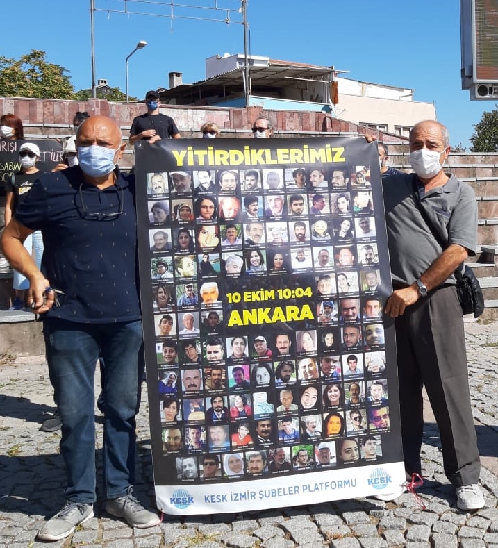 “1 Mayıs katliamından Maraş katliamına, Bahçelievler katliamından Sivas katliamına, bu ülkenin katliamları ile hesaplaşmak için mücadele verenlerin karşısına çıkarılan duvarları ve engelleri biliyoruz. Ne yaparlarsa yapsınlar, ne duvarlar örerlerse örsünler, o duvarı yıkacak tuğlaları çekip çıkaracağımızdan kimse kuşku duymamalıdır. 10 Ekim katliamında rolü olan, görevini ihmal eden, katliama yol veren ve emir veren tüm sorumlular yargılanana ve hak ettikleri cezayı alana kadar öfkemizi diri tutacağız. Katliamın unutturulmak istenmesine izin vermeyeceğiz. Katledilen arkadaşlarımızın hesabını mutlaka soracağız” sözlerine yer verildi.