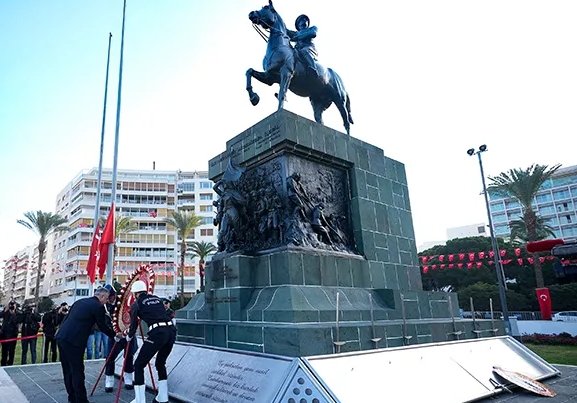 Anma programında İzmir Valisi Süleyman Elban, Ege Ordusu ve Garnizon Komutanı Orgeneral İrfan Özsert ve İzmir Büyükşehir Belediye Başkanı Cemil Tugay, Atatürk heykeline çelenk bıraktı. Program, Sabancı Kültür Merkezinde düzenlenecek anma etkinliği ile devam edecek.