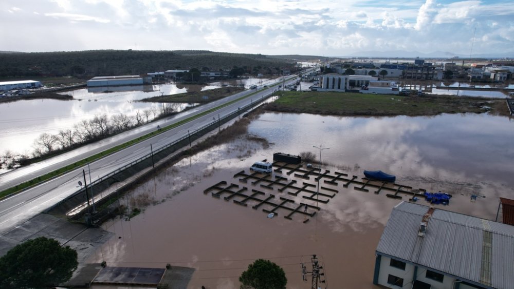 Yoğun yağış nedeniyle Çanakkale ile İzmir’i birbirine bağlayan E-87 karayolu kenarındaki Nikita Deresi taştı, yol araç trafiğine geçit vermedi.