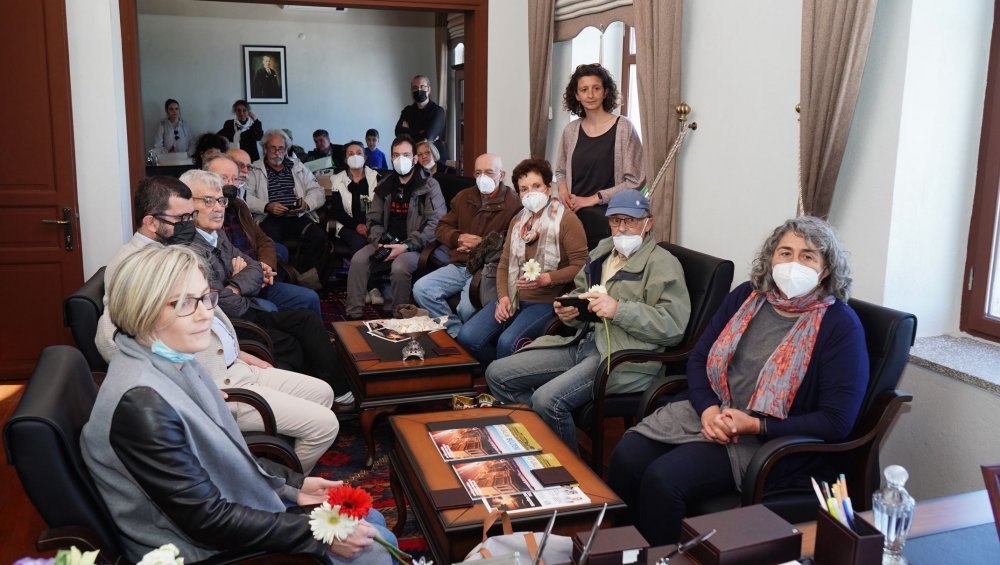 Heyet üyeleri ayaklarının tozuyla Ayvalık Belediye Bakanı Mesut Ergin’i tarihi binada ziyaret etti. Ziyarete Özgüven ve Gönenç’in yanı sıra Ege’de Birlikte Var Olma ve İletişim Derneği Siniparksi Başkanı Villy Tentoma, derneğin kurucu başkan yardımcısı Stratis Pallis, karşı adanın eski belediye başkanları Aleksandros Evangelinos, Apostolos Kominakas ve yönetim kurulu üyeleri katıldı. Tarihi buluşmaya bu konuyu belgeselleştiren gazeteci, yazar, belgesel yapımcısı Gökmen Ulu’da tanıklık etti.