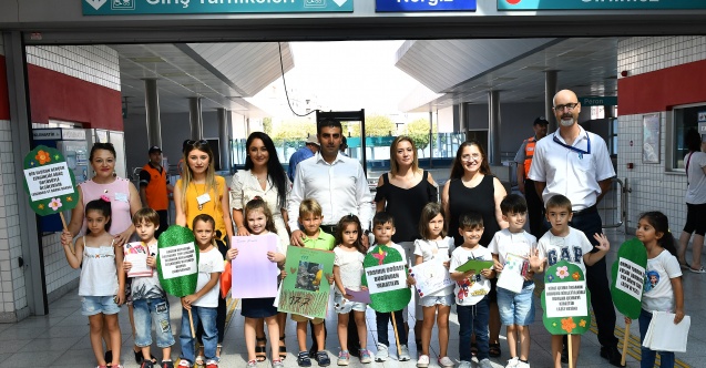 İzmir Büyükşehir Belediyesi İZELMAN Anaokulları öğrencileri kendi hazırladıkları görsellerle nasıl bir doğa istediklerini İZBAN’da yolculuk yapan büyüklerine anlattı.