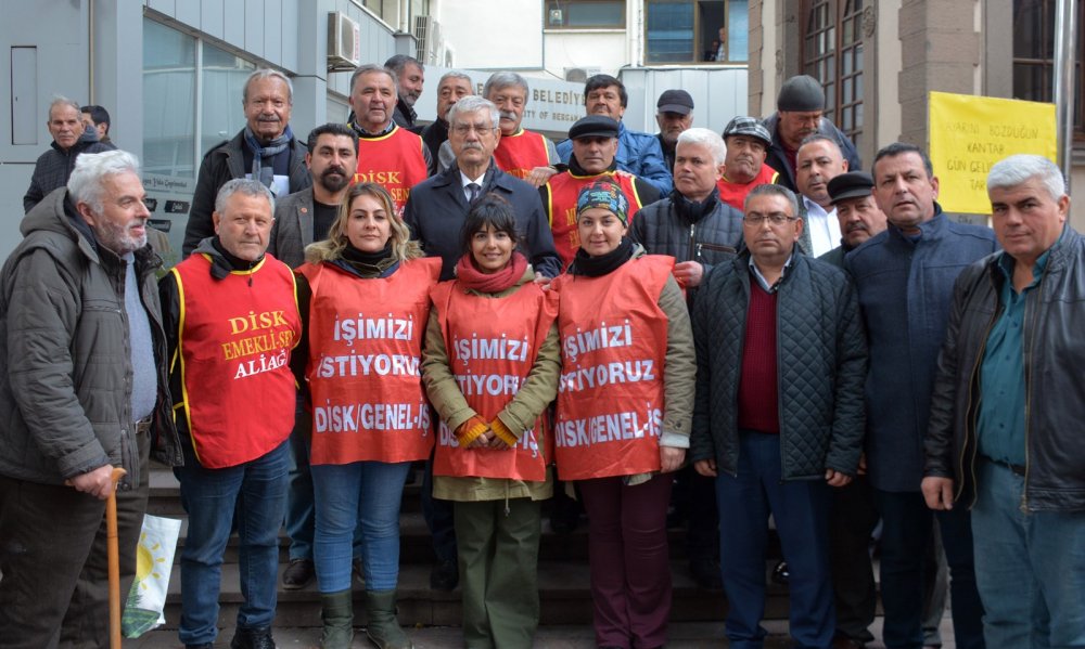 Beko; “Bugün burada üç kadın işçi arkadaşımızın haklı, hak arama mücadelesine destek vermek için geldik. Tamda kışın ortasında 3 kadın 1 erkek işçi arkadaşımızı işten atıyorsanız, ‘sizin ocağınız sönsün, siz aç kalın, kira parasını veremeyin, mutfakta tencereniz kaynamasın’ demek istiyorsunuzdur. Bu aç kalın anlayışından başka bir şey değildir. Tamda kışın ortasında çocukların eğitimleri var, sağlık sorunları var, ulaşım, kira, elektrik ve insan olmaktan kaynaklanan temel ihtiyaçları var. Dolayısıyla bu arkadaşlarımız çalışmak zorundalar. Bu güzel arkadaşlarımızı ilk önce mobbing uygulamışlar. Ardından sürmüşler, sendikalarını değiştirmeye zorlanmışlar. Sonuçta işten çıkarılmışlar. İşsiz bırakılan bu insanların derhal işbaşı yapması gerekmektedir. Bergama Belediyesi’nde sosyal cinayet işlenmiştir. Bunu görmezlikten gelemeyiz” dedi.