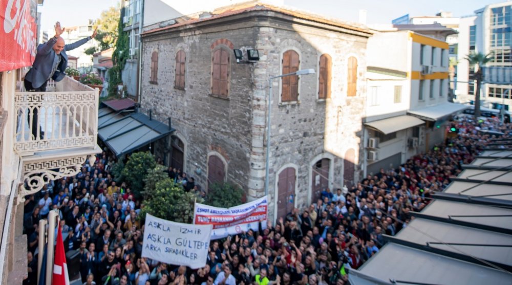 İzmir Büyükşehir Belediyesi işçileri, 9 Eylül kutlamalarından sonraki süreçte İçişleri Bakanlığı tarafından hakkında çeşitli soruşturmalar başlatılan İzmir Büyükşehir Belediye Başkanı Tunç Soyer’e destek mitingi yaptı.