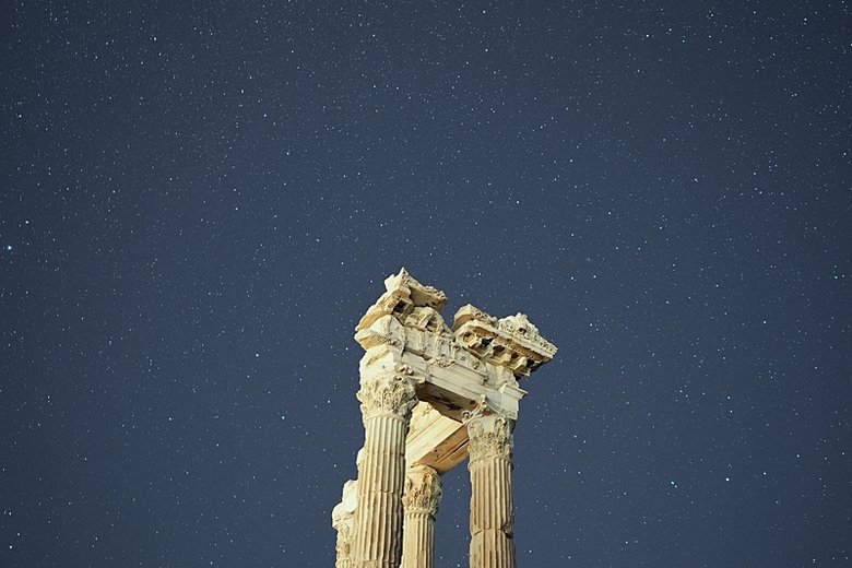 Kurulduğu yüksek tepeden verimli topraklara ve su kaynaklarına bakan ve Makedon Kralı Büyük İskender'in kenti olarak da bilinen antik kent, Anadolu Ajansı ekiplerince Kültür ve Turizm Bakanlığından alınan özel izinle kentteki tarihi yapılar ile "Perseid meteor yağmuru" ve yıldızlı gökyüzü uzun pozlama tekniğiyle görüntülendi.